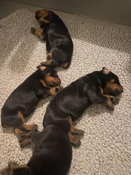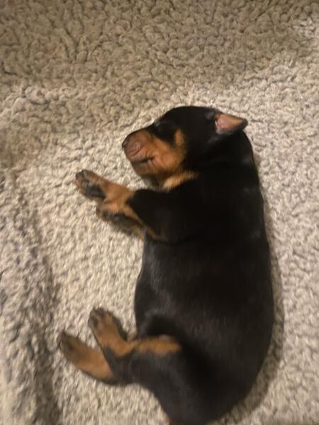 message melongaro about this ad Born October 14Taking deposits now. AKC European bloodline. Black/tan. Tails docked dew claws removed. Proven bloodline dcm free. 2 year health guarantee. Wilson,NC. Will be large , active, very intelligent dogs. Well socialized as they are raised in home setting indoors.Great for families and excell in training . 252-360-9827. You can also view past and present puppies on Facebook, Melissas gorgeous dobies . Limited akc $1500, full akc $2000 |