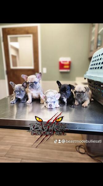 message beastmodebullies about this ad 3 weeks old frenchie pups Available akc registered 4 females 1 male accepting deposits starting at 2k call or text for more info 404-808-2391 @beastmode_bullies_atl |