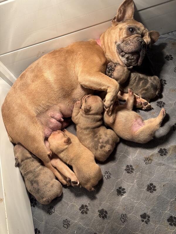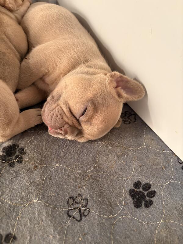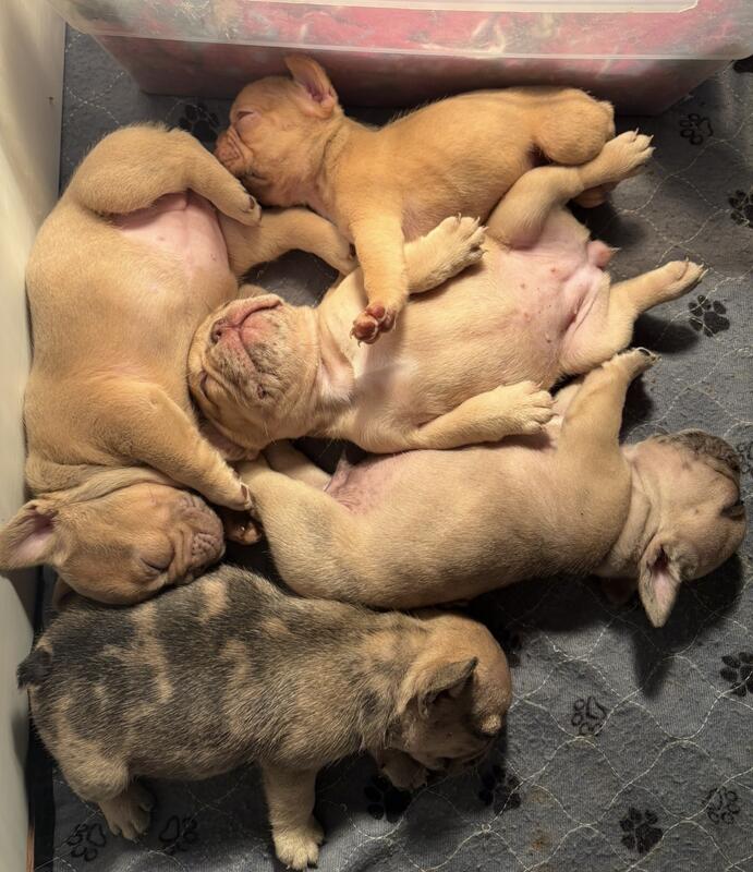message wnbbyzus about this ad Frenchies ready NOW 1 male 2 females still available. Color carriers Cocoa, tri, blue, and testable. Parents are health tested Healthy, high quality lines. Great open nares and no known allergies. $2500 with AKC papers, $2000 pet home Pups have first puppy shot and have been dewormed twice. Call or text for more info 910-806-538o (Dad is the cocoa tri pictured) |