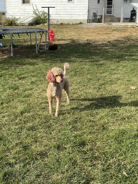 message bertmarie92 about this ad Venus is a 4 yr old female intact poodle. She has had one litter of AKC poodle puppies. Great mother and great pet. She is crate trained, lead and of course potty trained. She is an alpha female. She is great with kids and cats. She like all the attention so another dog is not recommended, she gets jealous. I can no longer keep her. 5677128760 |
