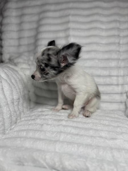 message roxystinytreasures about this ad Meet Marshall - he is a male long hair Merle & white chihuahua who was born 9/5/2025. He will be ready to go now - he is great with kids as we have both toddlers and teenagers and other dogs/cats. he is well socialized. he will have his 1st set of shots, his dewormings and his vet visit are all done before he leaves. he will come with his goodie bag that has some of the food his has been eating, his puppy passport which has his shot/deworming and vet visits info in plus other goodies! Both parents are on site. We do require a deposit to hold the puppy of your choice. We only accept Cash or Zelle for payment - we do not accept checks. We do offer a puppy nanny service for an additional charge for out of state buyers. I know there are a lot of scams/scammers out there now a days, we are more then happy to video chat and we can provide references from previous buyers showing we are legitiment. My Facebook page for my puppies is Roxys tiny treasures if youre interested in following. For more information please call or text me at 616-600-2008 message roxystinytreasures about this ad |