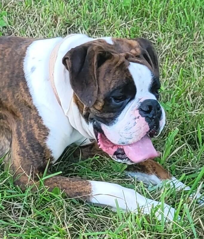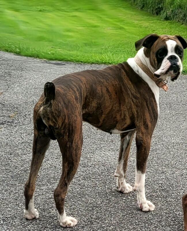 message boxersngoats2 about this ad AKC Rocky is available for stud service. 37.5 pct Euro lines.Super intelligent Teach able.I believe definitely heritabilty Female must have negative brucellosis test.Produces gourgeous pups .All puppies have deposits.Taking names for waiting list. Call or email to view and discuss |