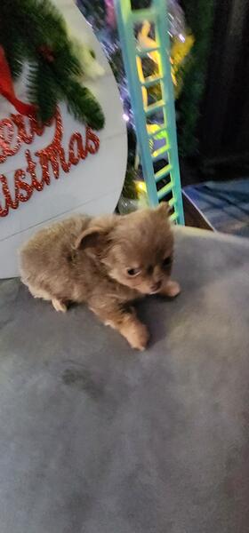 message starrocks about this ad They are ckc registered with insurance vet check and dewoming and 1st shots comes with toy starter food puppy pads blanket with its siblings and mommy scent for easier transition to new home. Dad is akc and ckc registered 5 pounds double long coat stable mom is 4pounds long coat lavender both apple head puppies are $2300 will be tiny text or call 317-345-96two7 |