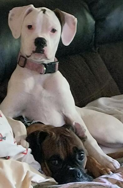 message boxerblessed about this ad Have a female boxer born December 18th, has tail docked, dew claws cut, up to date on shots, wormer, had rabies shot as well. Has had monthly flea and tick chew House-trained. Plays well with our male boxer as well as the cat. She's a very lovable awesome pup that I really wish could keep just unable to at this time so regrettably looking for her a loving forever home. |