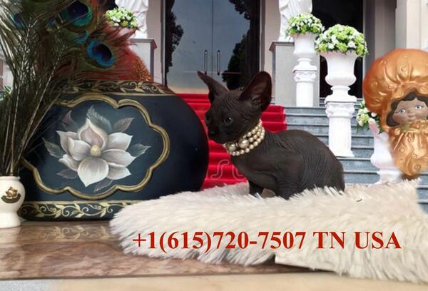 message mastinaro1 about this ad Black solid Sphynx kittens to pet homes, TOP quality from elite imported champions stock; scratching posts and litter box trained. No hair growths. Loving affectionate, not caged. 2250-2500 pet price. We are in Tennessee, can ship for additional fee. |