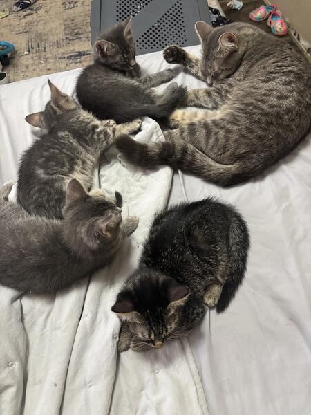 message dstnwl9135 about this ad Born July 6th 2025. The three gray ones are female and the black tabby is male. Very playful, around kids and dogs so theyre pretty used to them; kind of iffy of the dogs still. Eating hard food. If you have any questions please feel to reach out or if you want any other pictures(they dont sit still well for them 937-408-2969 |