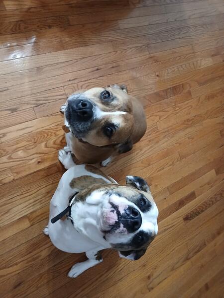 message cleveland about this ad We have two female dogs Brown dog biscuit is half pitbull and half American bulldog shes around 55lbs born 10-25-2017 Both lived with cats hasnt been around other animals except each other and cats Abby is three quarters American bulldog a quarter pitbull shes was born 4-21-21 shes around 75lbs Abby is biscuits pup weve had them both their entire lives we really just dont have time for them Ideally we like to keep them together Looking for good homes for them 440-351-1887 |