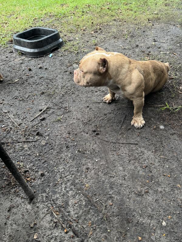 message beatbullies about this ad The Big Twix line continues with this blood. Natural muscular build correct composition Dame Tri tan Merle Nano pocket extremely muscular Sire White Chocolate and Tan Tri huge block head with a heavily muscular build pups pics will post when they are born. Born 12/10/26 |