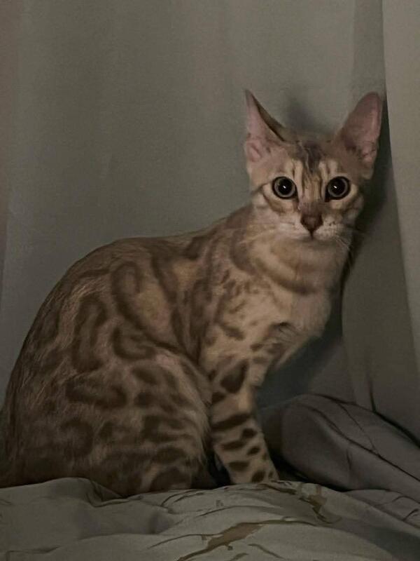 message bluebirdb2f about this ad 4 year old female snow blue rosette bengal, proven breeder, up to date on vaccines and microchipped, good with dogs and other cats once given time to adjust. Located in West Toledo. $1000 or may consider trade for young unaltered male bengal |