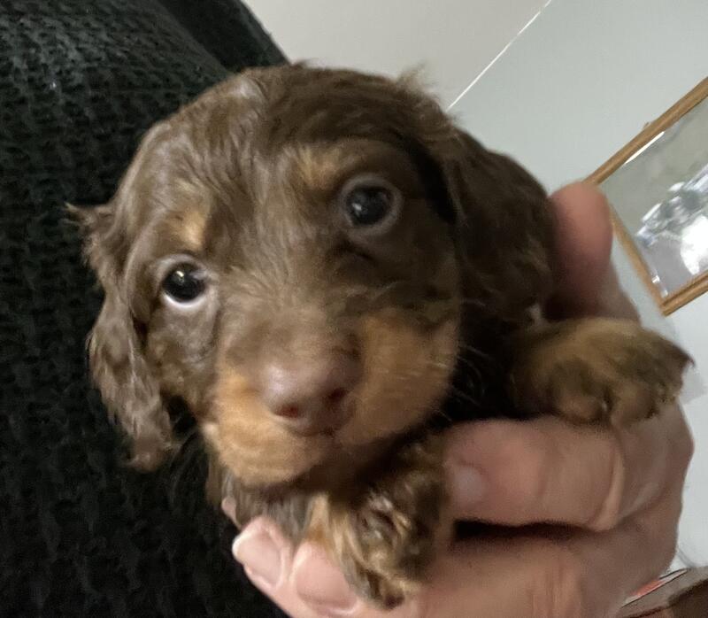 message dogzruleanddrool about this ad Tentative placement for our guy! If him or siblings placement fall through, Ill follow-up with those who sent messages! Thank you! Hi folks! I havent been on for several months as we havent had many puppies this year. I do have ONE long haired chocolate male with hidden spots. His coat looks almost like its been dyed in spots-its blended not circle spots like you commonly see. I posted his picture, but it doesnt show the blended spots very well. He is $650 cash at pickup. He will be ready to go home 12/19, just in time for Christmas! Vetted, 2-vaccines and dewormed as preventative measure. He comes with a goodie bag of samples to get you started. Hes been raised in puppy pads. I dont have any other puppies available right now. He initially had placement but the family decided they wanted a female, so theyre waiting. If youre interested in this little guy, please send me your name and number. Ill check back this weekend to see messages and reach out. Year-round standing post-WE HOPE TO HAVE MORE FREQUENT LITTERS IN MID 2026, but are limited now. Miniature Dachshund puppiesthis is my standing post as we have litters randomly throughout the year. They are purebred but not registered. Both parents are on the farm. Since we dont force breed, we dont know exactly when we will have puppies. We have potential for all markings and fur length. We pride ourselves on the personalities and health of our puppies. They go home between 8-12ish weeks. Vetted and have at least 2 puppy 5-way vaccines and we keep them on a regular deworming schedule for preventative care. They go home with their vet packet with birthdate, vaccines, copy of vet review and their deworming details. We also send a welcome home kit with sample food, soft blanket, chew toy, and some puppy pads. Unless indicated otherwise, pictures are examples of puppies we had in the past and possibilities for the future. Please provide your name and a number so we can text pictures of current availability. If you dont leave me your info, I will assume youre just curious and not actually serious. Female dapples are my most frequent request-limited availability. Dapples and Piebalds are $750 with tax- Black & Tans and Chocolates are $650 CASH ONLY, all at pickup, no deposit. We do placement on first come basis. *we do NOT ship puppies Thanks in advance! Kim message dogzruleanddrool about this ad |