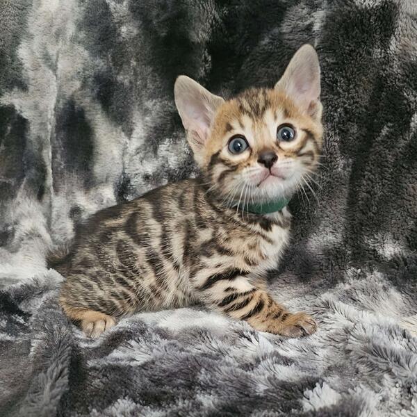 message amarebengals about this ad Our beautiful brown rosetted boy, Froggy, is looking for his forever home! Raised here at Amare Bengals, we pride ourselves on producing healthy, stunning, and well-socialized kittens. Froggy comes vaccinated, dewormed, TICA registered, neutered, litter box trained, health-certified, and vet-checked. He also includes a 2-year genetic health guarantee, a 1-week health warranty, and a fantastic kitten kit! Born 3/11/25. He can go home mid-July, AFTER HIS NEUTER! Find Froggy's photos, personality details, and videos on our social media and/or website. Contact us via Facebook or by visiting our website. The website provides my direct number! AmareBengalsDOTcom Amanda |