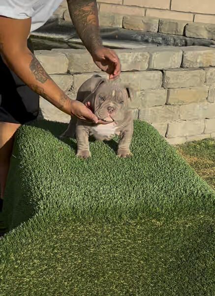 message livinglegends about this ad This is a female off of Sire: Leader(2xCrunch) and Dam: LLE Hennessy(1xSwiss cheese, 1xTBC GQ, 1x100K, 2xKing Giagi She is a full suit lilac. She is a great female, great temperament, great with kids and follows off leash. Crate and house trained. ABR registered. |