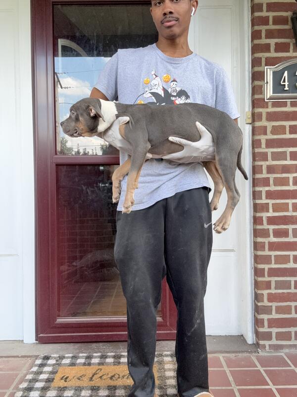 message dbberon about this ad Female American Bully puppy pet home shes super sweet and gets along with other dogs and is great with kids, located in Baltimore Maryland. |