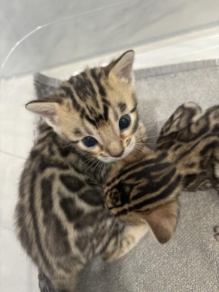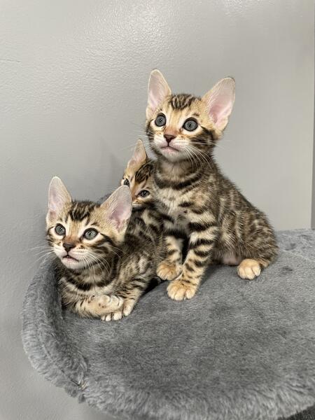 message mjplnz6214 about this ad hi we are selling our three Bengal cats. They are not fixed. One is almost 3 the other two are three. They both have had litters and are both good moms. The kitten, pictures, and the picture with the one with the pink leash. These are some of their kittens theyve already had. shy at first but will warm up. we want them all three to go together. Asking 4k but will take offers. |