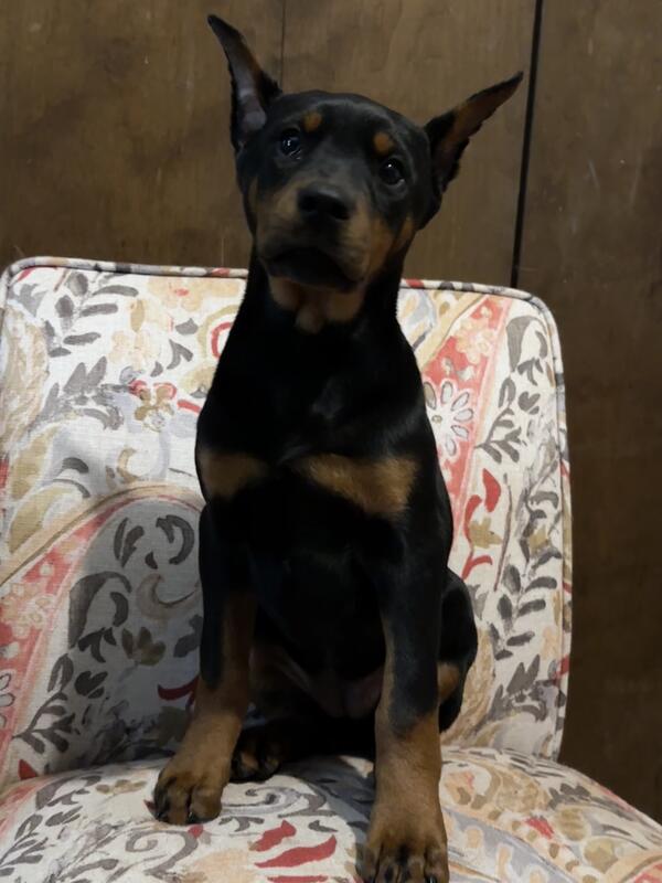 message bhdobermans about this ad This beautiful black & rust female Doberman is ready to for her new home! Born July 31st, she has a big personally, rich markings, and is a total blast to have around. Shes being socialized daily for a smooth transition to her forever home. She will be on the smaller side, likely under 60 pounds so perfect for someone looking for a more manageable size. Perfect for someone seeking a loyal companion! Text 3303042678 to come see her! |