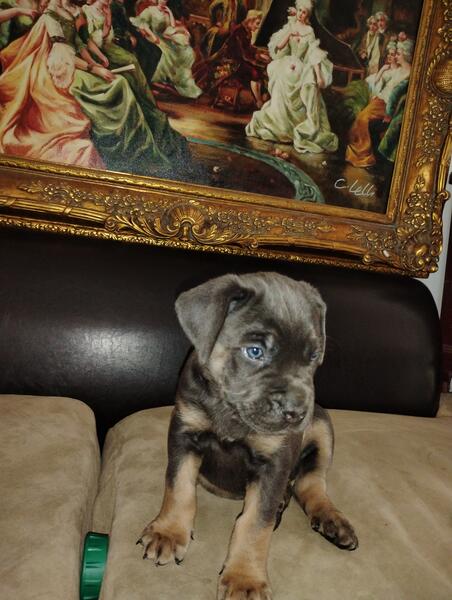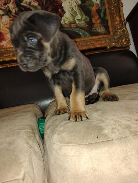 Cane corso puppy 700 Tri girl tail clipped parents AKC registered text call 248 900 7298
