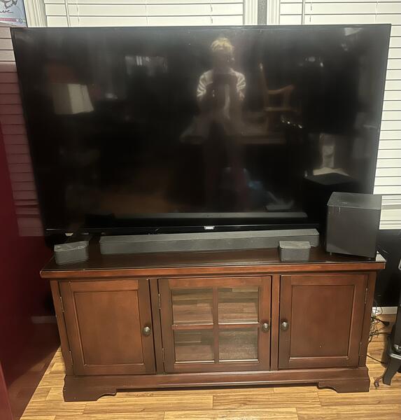 75 Phillips smart tv, real wood tv stand, Vizio surround sound. Will sell separately