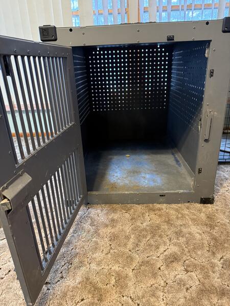 message amberkayy28 about this ad Used XXL Impact Crate- Sound, Sturdy and unbreakable! Perfect for your high energy, high anxiety, or escape artist furry friends. It was used for a 160# Cane Corso, who still had plenty of room to move around comfortably. Will be cleaned and sanitized. Pickup or delivery for fee (in a reasonable distance) |