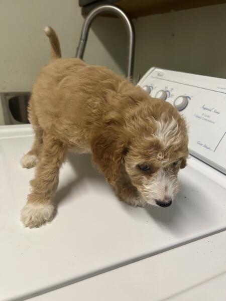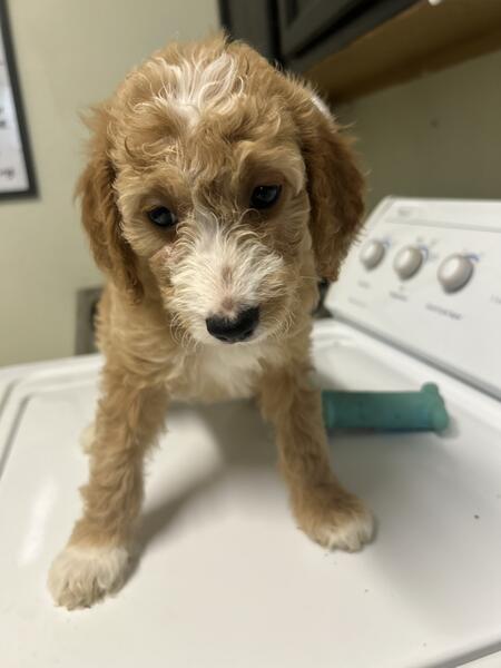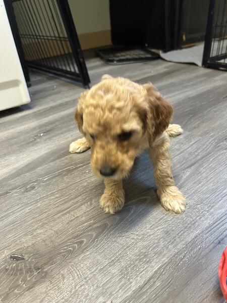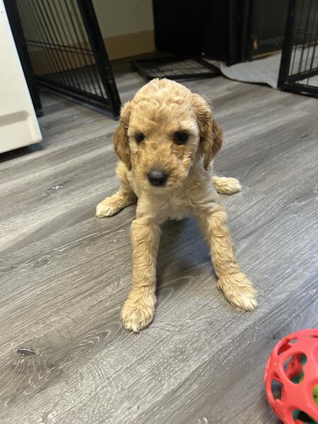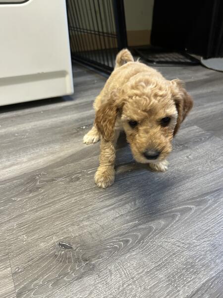 message lovethepuppies about this ad 75% Poodle and 25% Golden Retriever. 1boy and 1 girl left. Born June 4! Mom and dad available for viewing also. Full grown will be between under 25 pounds. Text or call me if you are interested 3135781161health certificates for each one first shots dewormed and nails clipped. You are welcome to come by and see them |