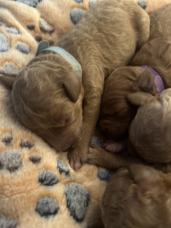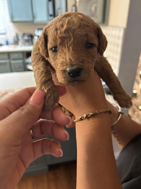 message lovethepuppies about this ad F1B mini goldendoodles Born Nov 22 15-20pounds full grown mom and dad on site Ready mid Jan 4 females left This is what comes with them -health Vet exam certificate -dewormed -potty training starts at 3-4 weeks -crate training -socialization -sound training -first shots -Puppy go home bag -1 year health guarantee Text or call 3135781161 you are welcome to come and see them and place a deposit |