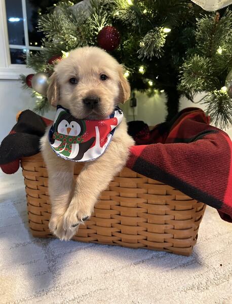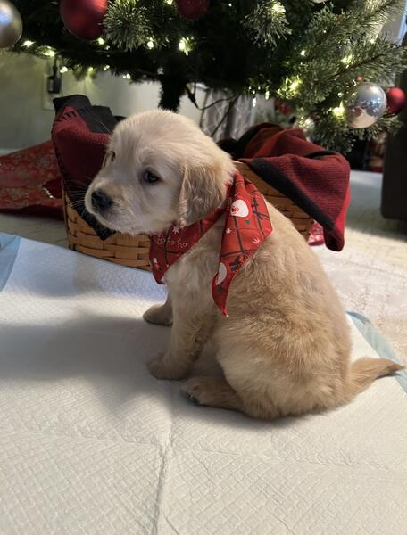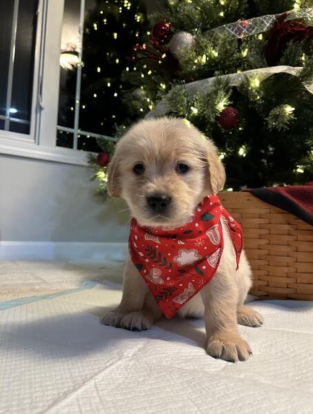 message lxpgg5454 about this ad AKC registered Golden Retriever puppies ready just in time for Christmas! Located in Winchester Indiana. Call or text 765-546-0687 for more info. |