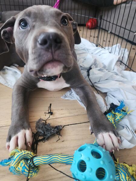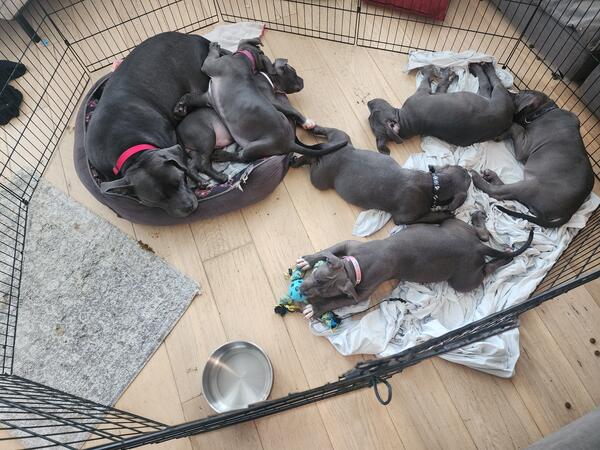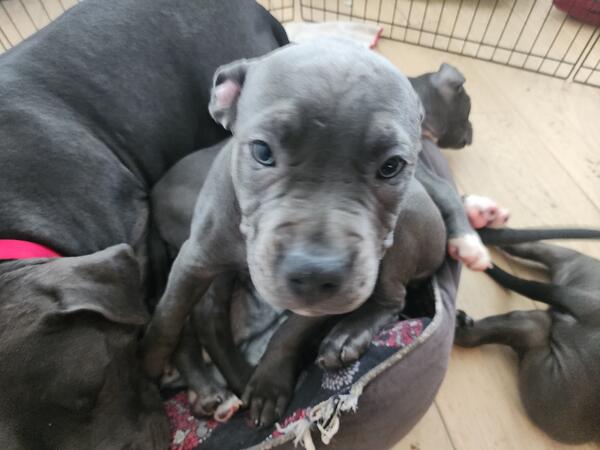 message bluenosebabies about this ad Hello we have 6 bluenose xl adorable ouppys. They just went for their firdt round of shots vet checkup and have deworming and have paperwork to show. 3 boys and 3 girls all with full gray coats. Puppies are 9 weeks and easy to go. Come take a look and fall in love with one today. In central vacouver. I also have both parents so you can see their temperament and full grown beauty. |