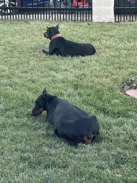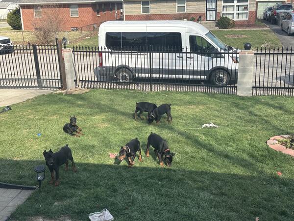 message vrncg3352 about this ad AKC European Doberman puppies 14 weeks old tails docked dew claws removed ears cropped; a pic of mom & dad, included; 1 male & 4 females available. For more info Text or call 317-997-5548. |