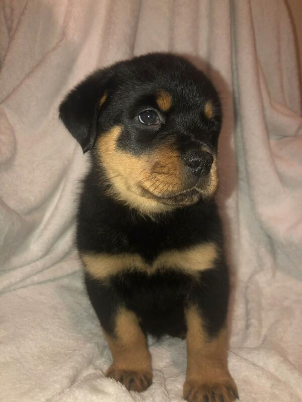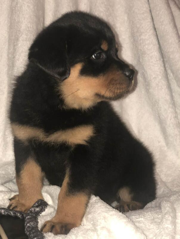message npridepoms80 about this ad We have one female Rottweiler puppy ready for herr forever homes today. She is a perfect combination of stocky blockhead German lines and the shorter broad cheated Serbian lines. She has great temperament and will make an excellent family pet or single companion. her lines are known for their protective instincts and they are great protectors while still being loving and gentle to their people. Has first shots and dewormings done as well as tail and dew claws removed. You can make this sweetheart your own just in time for Christmas. She is the most loving cuddly pup you will ever meet. You can contact us at (989)710-3603 9*8*9*7*1*0*3*6*0*3 |