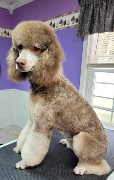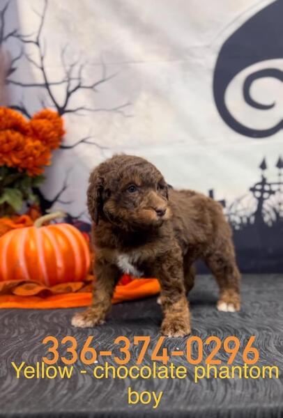 AKC small standard poodles. Sire is chocolate(brown) phantom and mom is black and white parti. Currently utd on vet and health guaranteed. Parents genetically tested. Groomer raised and acclimated already to the grooming routines, car rides, socialized and ready to go. 8 weeks November 9th. Chocolate (brown black, cream. 336-374-0296