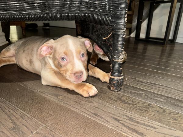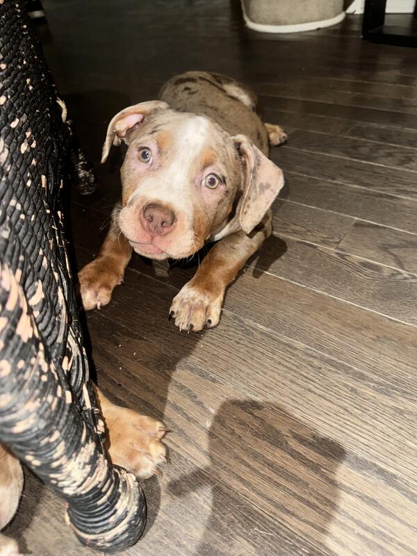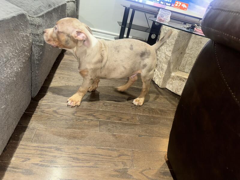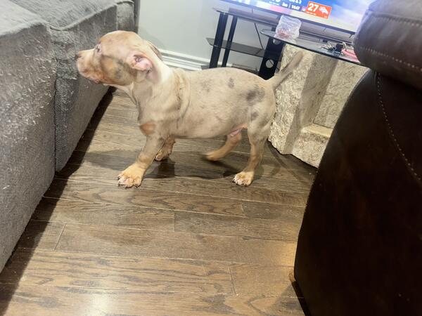message gamebred613 about this ad We have 2 gorgeous male American Bully puppies still available from our most recent litter! These boys are healthy, socialized, and ready to join their new homes. Registry: ABKC Registered Age: 12.5 weeks Color: Stunning merle and tri variations (see photos Sire: Bronxxx of Incredibullz Dam: Truth of GameBred Kennel: Game Bred Bullies 613 Price: Negotiable 500 with breeding rights Deposit: $500 to reserve Health & Guarantee: Vet checked and up to date on vaccinations Dewormed and cleared for new homes 1-year health guarantee (death clause for genetic/health issues) Temperament: Playful, confident, and well-socialized around other dogs and people. Perfect combination of drive and affection. Check out the photos these boys are even better in person! Contact Shannel at Game Bred Bullies 613 Call or text: [343-543-5666] Message directly here on Hoobly for more info or to schedule a visit. Serious inquiries only. Quality speaks for itself. message gamebred613 about this ad |
