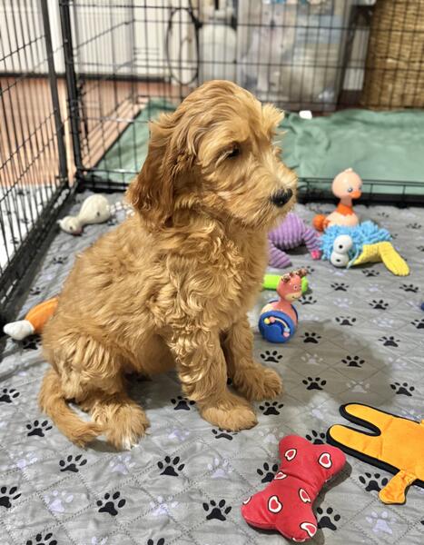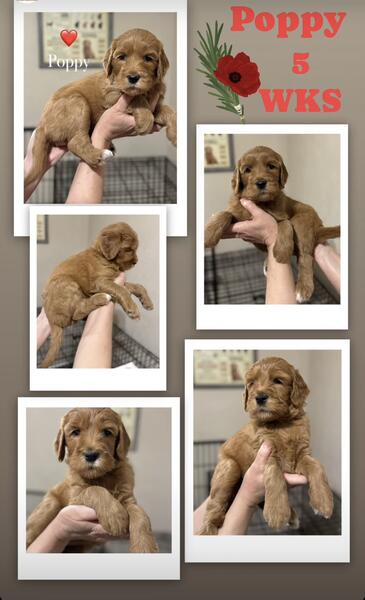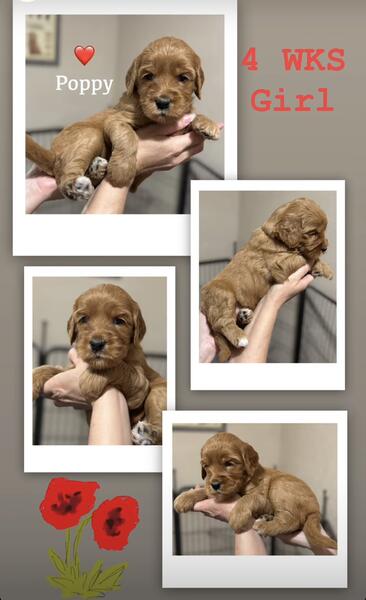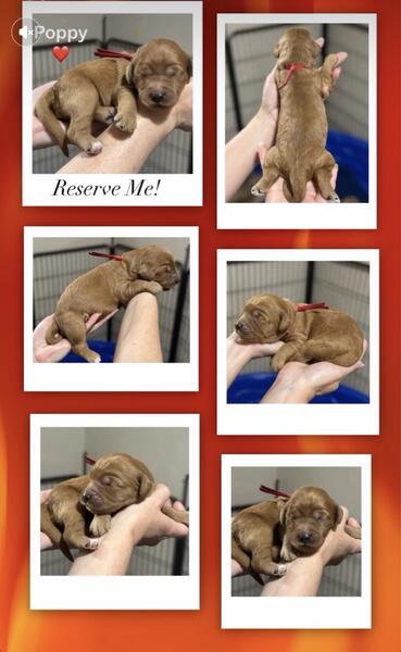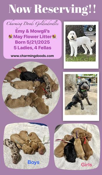 message cfalks1 about this ad Charming Doods Goldendoodles- MultiGen Goldendoodle seeking her fur-ever home. The last available girl- 10 Weeks and Ready To go. 1 year health guarantee, vet health clearance, declawed, dewormed, 2 sets of vet administered vaccinations, groomed, early potty and kennel training, puppy starter kit, and so much more! Both Parents on site- health and genetic tested. Located in Bay City,Tx. www.charmingdoods.com Text 979-557-3598 for more details. Now reserving- END OF SUMMER SPECIAL $200 DISCOUNT! |