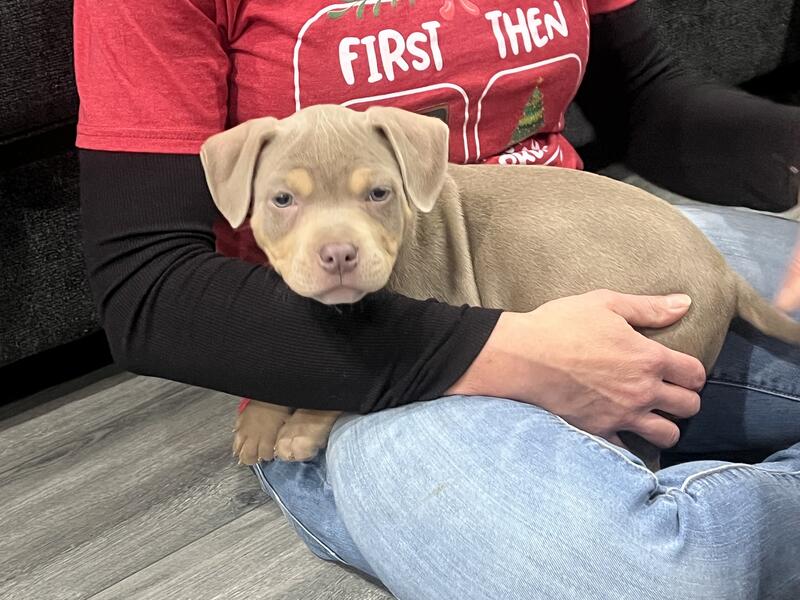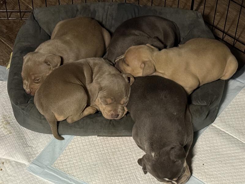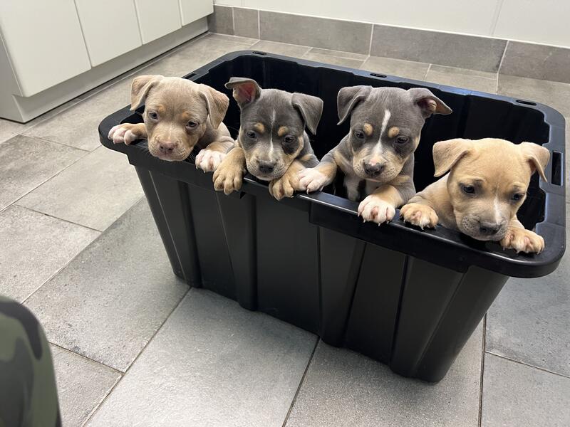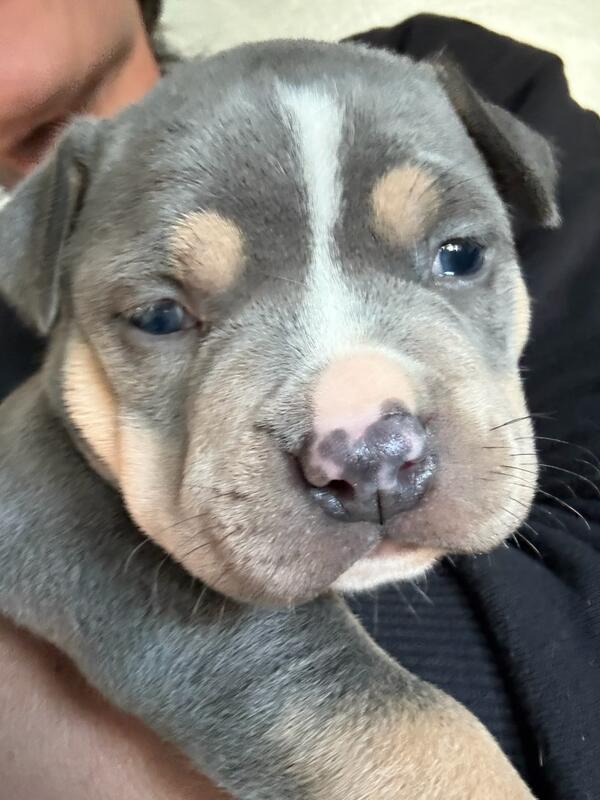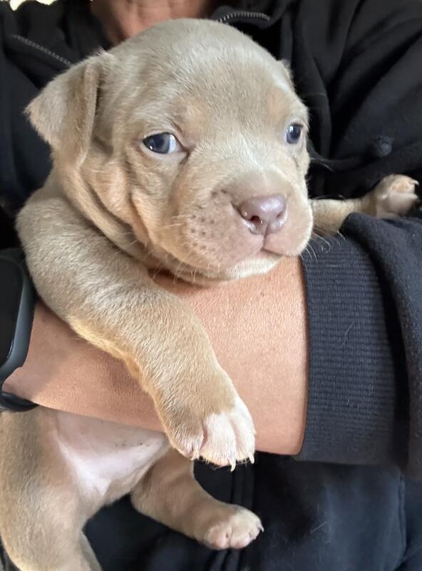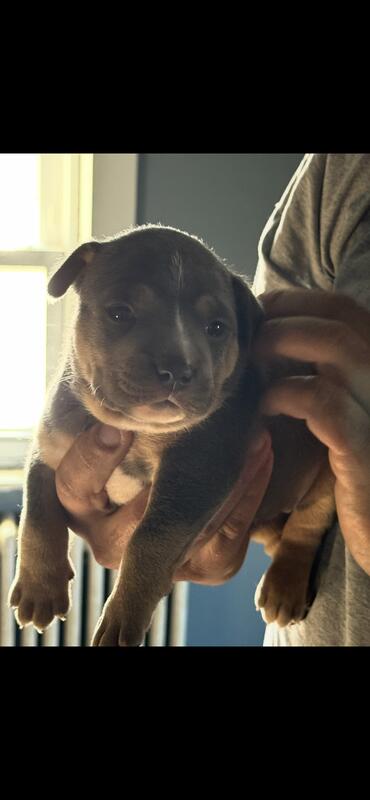 message johnzx10 about this ad American bully pups born on oct 18th abkc reg utd on shots vet checked ready for there forever homes 3 males left text 631-295-8489 for info |
