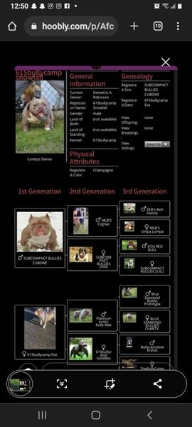 message goodsbullys about this ad 2x Cubone female, onyx 2.o ,black n white, super small, her ped is pictured above, Snowfall cuz one son was bred to Cubone daughter , breeding is with Choco taco, from @doctorpocket, boy is chocolate tri n super nice, tap in any questions lmk |