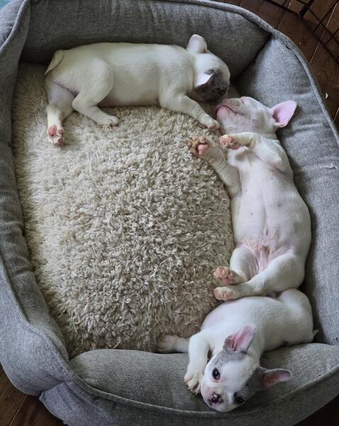 6 weeks old. Half French Bulldog, Half Boston/Frenchie mix. Super sweet and ready to go to good homes.