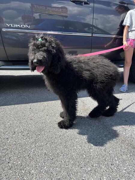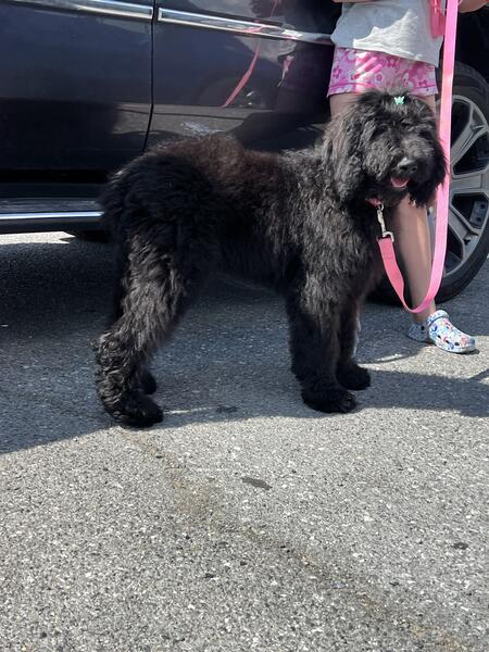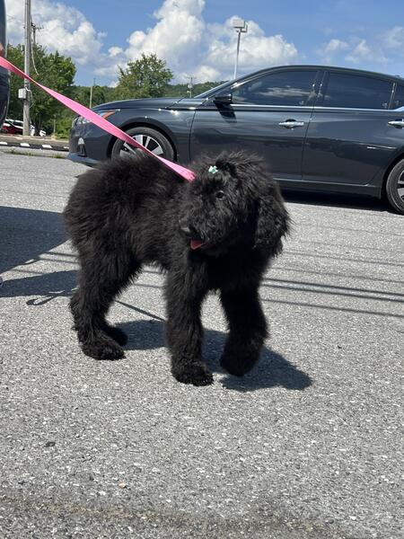 message linewife about this ad Delilah is a beautiful 6 month old puppy with a solid black curly coat, she does well with people and other animals, she is basically fully house trained, had shots and wormings, she has the sweetest temperament. Her mother is a Goldendoodle who lives here with us and her dad is a standard poodle. You can text 3042223418 for more info |