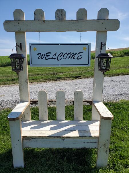 Outdoor Garden Bench W/ Solar Lights & Welcome Sign -- 120.00