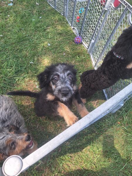 message triskelions about this ad Price Dropped From $400 To $200 To Find New Home F1 Miniature Borderdoodle Puppies 50% Poodle 50% Border Collie Expected Adult Weight 20 pounds Black-N-Tan Female AKC/ABCA Registered Parents/GrandParents And Genetically Health Tested Thru Embark For Genetic Diseases In Bloodlines Born May 29, 2025 All PUPPIES COME WITH 6-8-12 Week Shots 4-6-8 Week Worming Microchipped With Enrollment Application and Extra Microchip Number Stickers Folder With Medical Health Paperwork Bill Of Sale & 1 Year Health Guarantee Grooming Process Started With Baths, Nail Grinding, Using Air Dryer & Ear Cleaning Puppies Are Litter Trained In Play Yard And Started Outdoor Potty Breaking Process Puppies Born And Raised In Our Home We Don't Own Any Kennels Puppies Are Socialized With People, Animals & Dogs And HouseHold Noises Visit Our Page On Facebook Hardin Valley Farms For More Photos And Videos We Offer Reasonably Priced Ground Transportion Services to your doorstep Ground Transportation Delivery Anywhere In Ohio $200 Ground Transportation Delivery Anywhere East Of The Mississippi River Is $300 Ground Transportation Delivery Anywhere West Of The Mississippi River is $400 message triskelions about this ad |