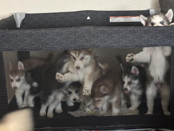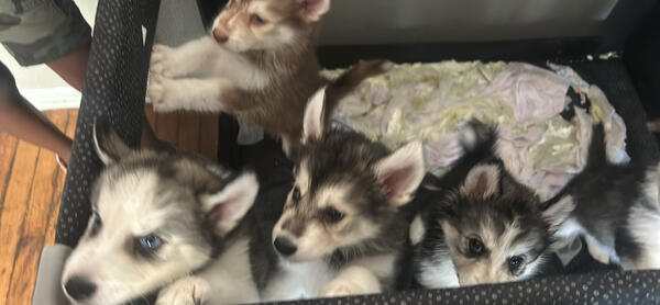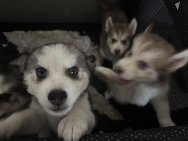 message lhgmlcmkabn about this ad 100 %Husky puppies just turned 7 weeks yesterday. 2 brown and white boys. One brown and white girl. 2 black and white girls and 2 black and white boys. They have no shots. Asking for $500 OBO call or text +1 720-642-5494 |
