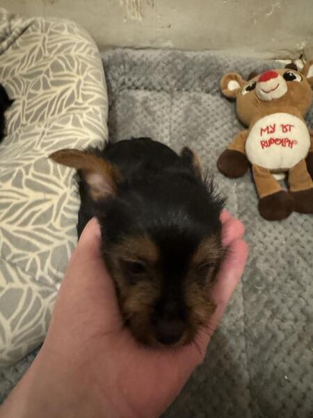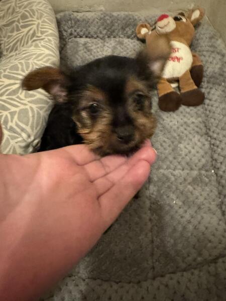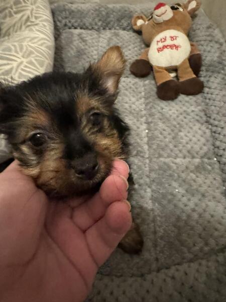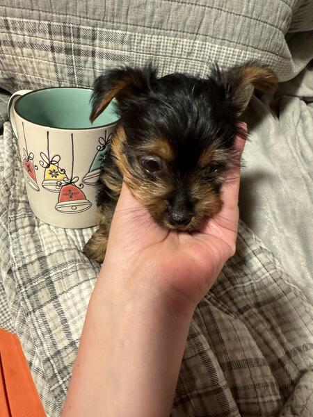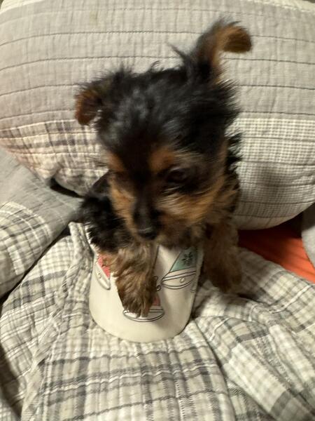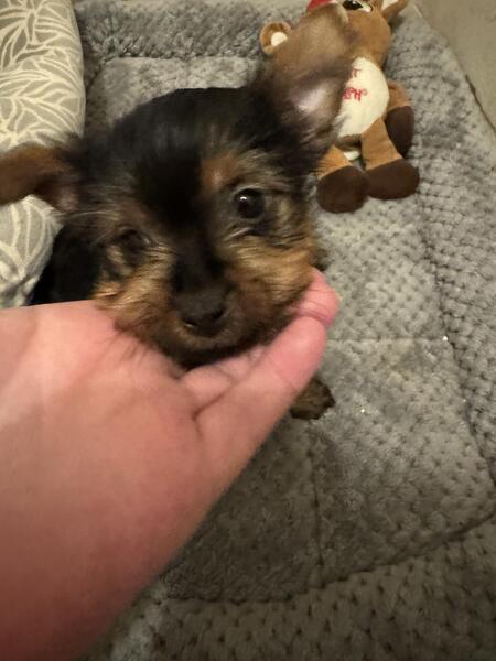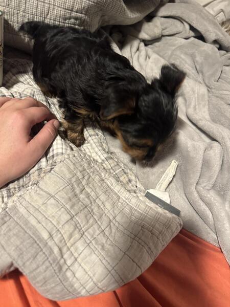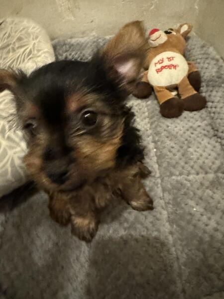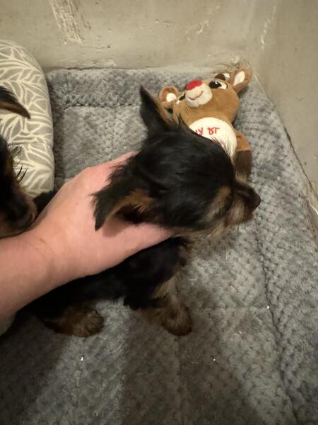 message designerpup78 about this ad Beautiful Male yorkie. Ready to go home Saturday March 16th. Born 1/20/24. Raised in home with 5 children and 2 German Shepherds. Excellent temperament. Both parents carry Parti and blue CKC registered (registration in hand) and health tested. Pups come tail docked dew claws removed, up to date on shots, vet certificate of health and microchipped. I offer 1 year health guarantee. Rehoming fee applies. Please call |