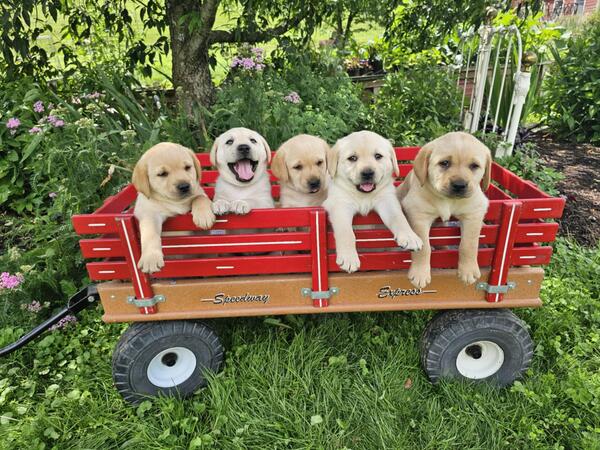 message judymum about this ad Remaining: 3 Girls Our English lab puppies are raised in our home by our family and children. These puppies come well-loved and actively socialized. They are pure bred AKC yellow Labrador Retrievers born on May 12, 2025. They will have AKC paperwork, vet examination record, dewormed, first vaccine, and a mother-scented blanket. Puppies are ready for new homes. Potty training has begun. Communicate with us and find pictures, videos, updates, and notes from past buyers on our family Facebook page: Mummau Family Labradors. www.facebook.com/MummauLabs You are welcome to visit and select your puppy and meet their mother: Riley. Riley is a gentle, calm, sweet yellow lab. She loves to lay by our side and when we go for walks, she is constantly by our side making sure we are ok the entire time. She is the most chill lab we have ever had. Riley is a very light yellow. The father is dark yellow. LOCATION: East Waterford, PA (central Pennsylvania) CONTACT: Facebook: "Mummau Family Labradors" (preferred) or text: message judymum about this ad |