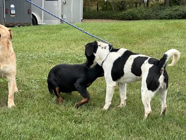 message kellyjamilgray about this ad A 45 LB MIX MUTT.APPROX 45 LBS FRIENDLY .NO CATS .GOOD FAMILY DOG .HES NEUTERED AND HAS RABIES . PRICE TO COVER NEUTER they claim to be beagle x ( I have no idea ) |