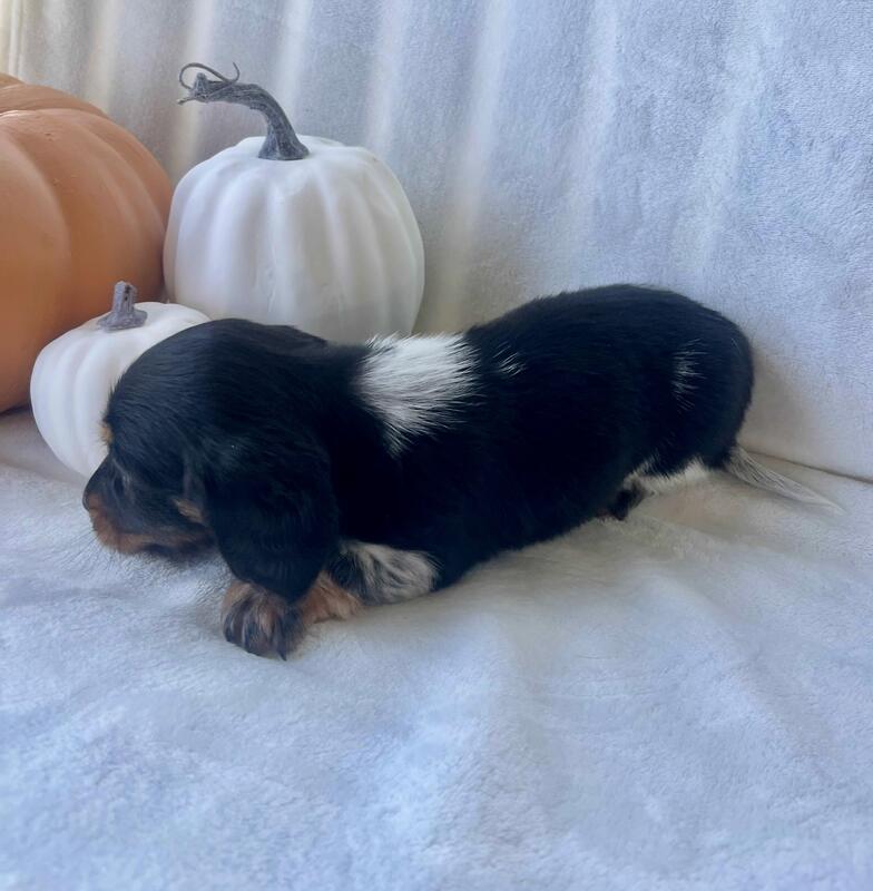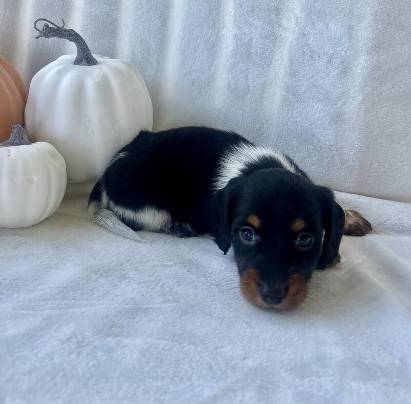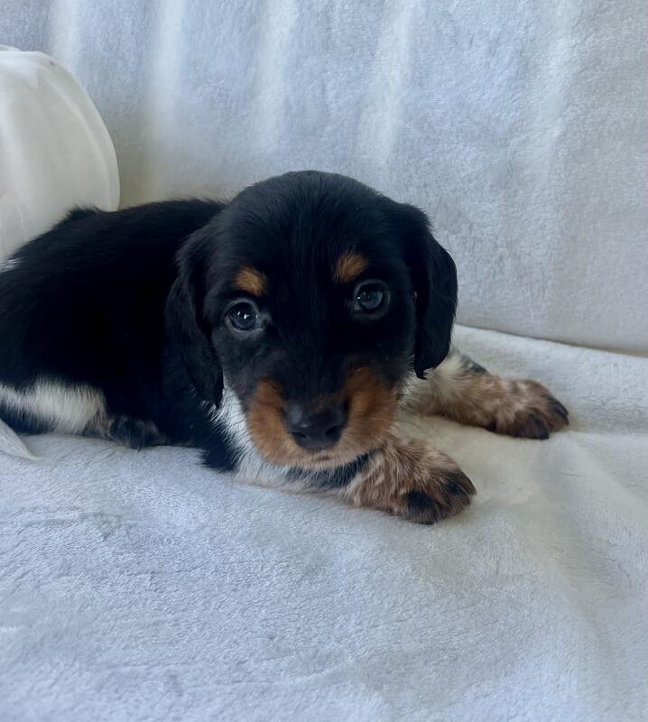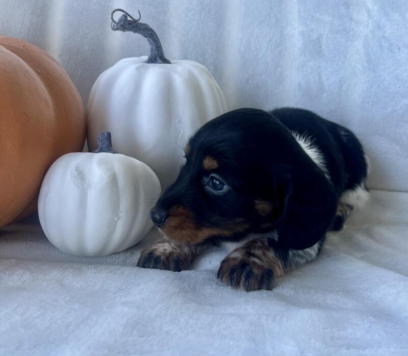 message mh27 about this ad This cuddly little guy will be ready for his forever home on 10/20/25. He is a registered mini Dachsund. His mom is a short haired mini weighing around 10lbs and dad is a short haired mini weighing around 12-13lbs so this little guy will be between that range. He will have a medium-long hair coat and is a piebald He is ACA registered and will go home with papers and a baggie of the puppy food he is eating. He will require a loving home who will show him lots of love and attention. If you think he would be a good fit for your family and home, we are currently taking deposits of half down to hold until he is 8 weeks and ready to go. |