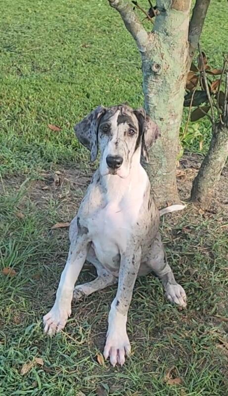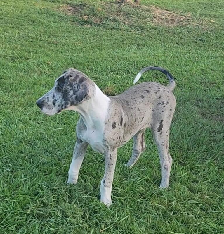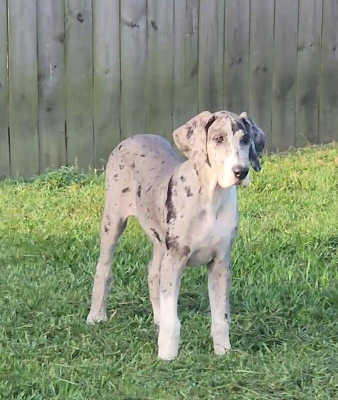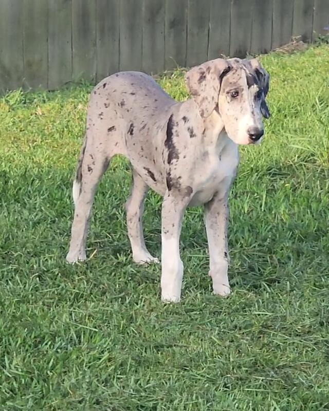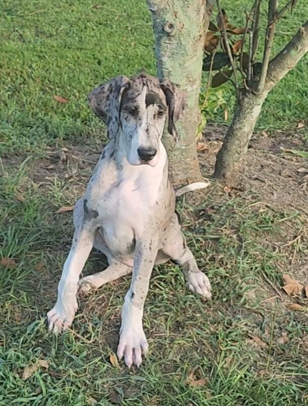 message greystonedanes about this ad Joanna was the only female of 9 puppies born 5/11/25. She is very curious and outgoing. She's looking for a couch to call her own. She has had all 3 rounds of puppy vaccines, age appropriate dewormings, is familiar with a kennel. We are working on potty and leash training. She comes with toys, collar, leash, food, shot record and CKC registration. I'm located just east of Baton Rouge and willing to meet within 400 miles. Ground shipping is available and extra at buyers expense. |
