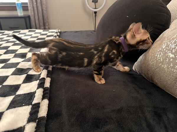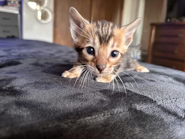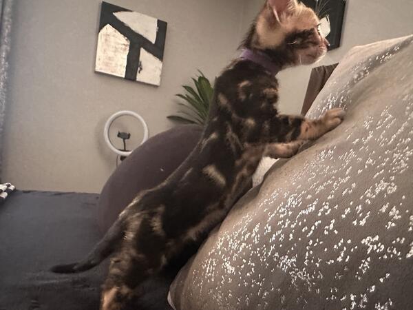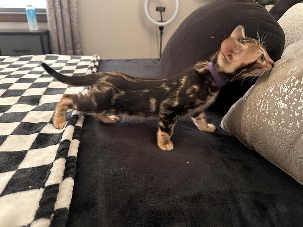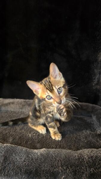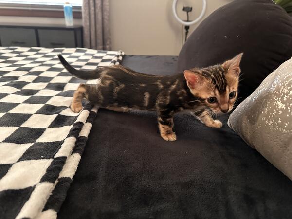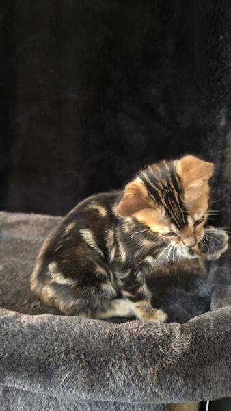 message mkebengals about this ad Hi, my name is Bex Im a female Bengal kitten who was born on September 25th 2024. Im one of 6 children my mother Bianca had that day. My mother Bianca is a glittered up and rosetted brown Bengal and my dad is a huge (also rare) melanistic Bengal. I am litter box trained, already on kibble and I love to play with all my toys and love any attention I can get. I have crazy marbled spots on my butt and my chest and paws are all stripes. I wasnt the most during my photo shoot, lol. I like to pounce and hide around corners during play time. I also, like my other sister, like to play with the dogs through the gate. So with that said, I am also already used to large dogsI have 3 Pitbulls I have been around since the day I was born. I am also used to using a Litter Robot as well as a normal litter box. >Any questions, requests for further pics/videos, pics of the parents, or to setup a visit in person or a Video Call please Call/Text 262.443.1699 (Text Preferred For Initial Contact) >First Deposit in gets HOLD Will not HOLD without DEPOSIT >Cash App and Zelle Preferred >Will ship or hand deliver personally for an Extra Fee Plus Travel 1600 OBO >1st round of shots can be arranged for extra cost, otherwise all kittens will come unaltered. >Kittens are ready to go in 1-2 weeks, will take it on a case by case basis. We can also hold as well, we enjoy having them so if you need to wait to pick them up or take delivery we dont mind as long as we have a 50% Deposit. message mkebengals about this ad |