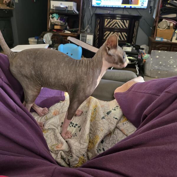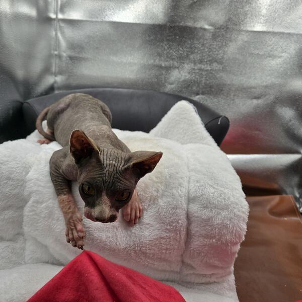 message srw729 about this ad CFA registered Sphynx kitten available, one black and white, the other tiger striped and white. No health tests done, I only have father and mother, kitten has been vaccinated and wormed. Very friendly and outgoing. Getting fixed October 23 Selling 800 now has been fixed |