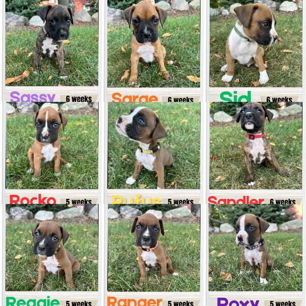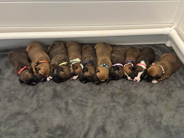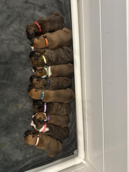 Pure bred boxers. Tails cropped and dew claws removed. Born on August 21, will be ready October 16.