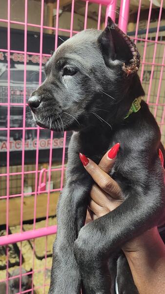 message greatmatchcorso about this ad 1-832-GMC-0031 (1-832-462-0031) Purebred Quality Cane Corso * Solid Black * Pedigree Papers with ICCF * Veterinary Health Checked * 1st Vaccination * D.O.B. 6/20/2025 * Female Available * Excellent bloodlines * Wormed every 2 weeks * Ears Cropped * Tail Docked * Dewclaws Removed tiktok.comgreatmatchcorso |