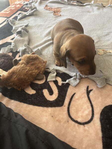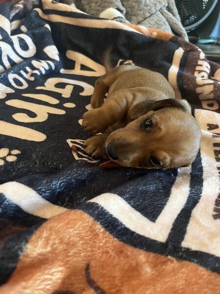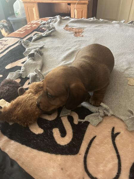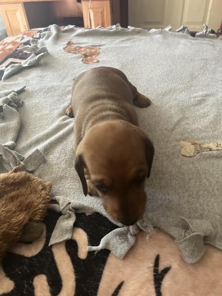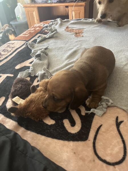 message jeanmark62 about this ad Male dachshund puppy for sale asking 600 Frist shot and deworming be done before leaving my home hold puppy ask a deposit puppy ready on September 21 mom and dad on site wirehair need any more information let me know |