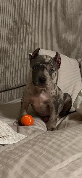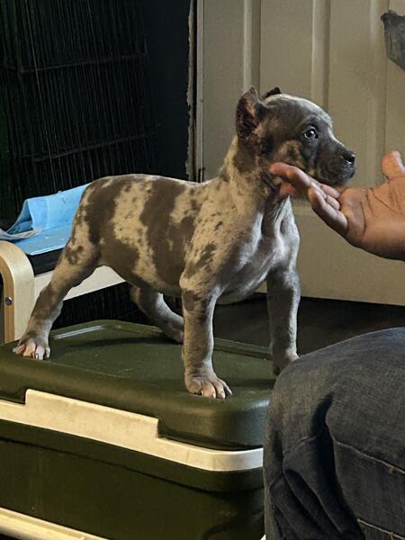 message xlbully about this ad OBO Intact male split face blue Merle 5 months old Breeding rights Good temperament, good with kids and playful. Crate trained Purchased him in ATL For sale in Wisconsin Reason for sale: New job working 7 days a week, dont have time anymore. |