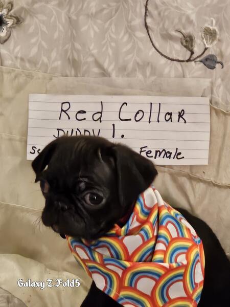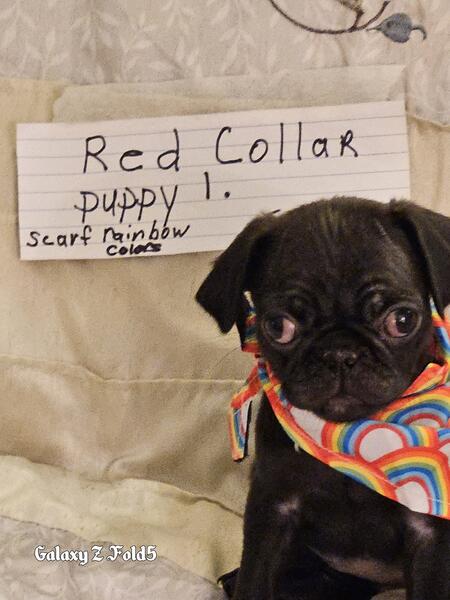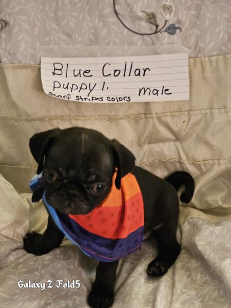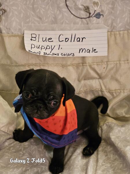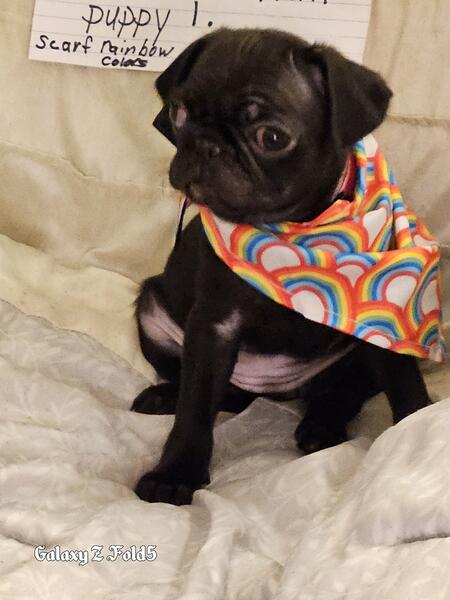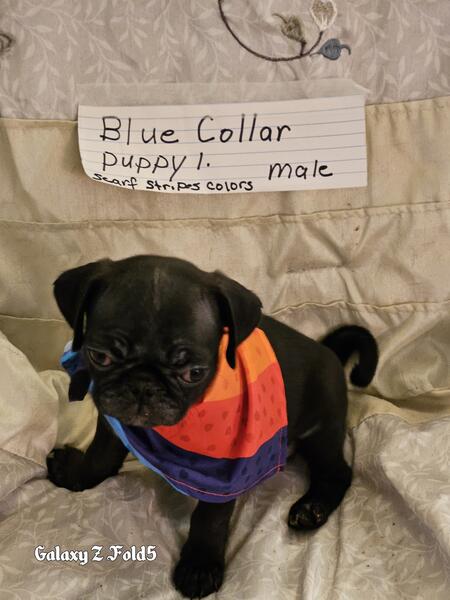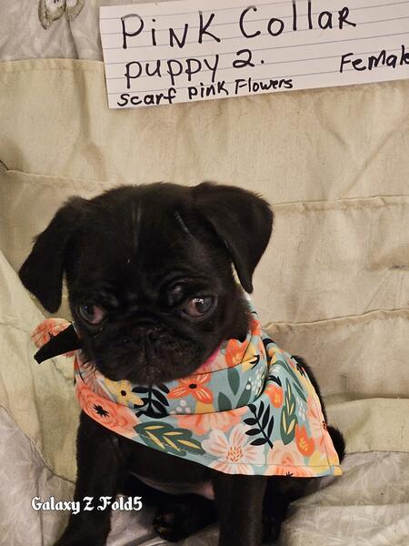 message starla about this ad Pug puppies. Born on 3 / 23/25. 10 weeks old. Black some have white down their chest. Very curly tails. 2 females and 2 males. Shots and warm record. No papers. No shipping in or out of state. No meet-up location. |
